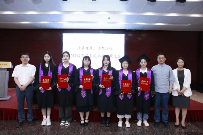 丁占罡部长代表学校宣读了中华女子学院“卓越毕业生”授予决定,并一一为毕业生代表佩戴绶带,周院长向毕业生代表颁发了荣誉证书,并合影留念。活动最后,周应江副院长对毕业生取得的优异成绩表示了祝贺,并向全体毕业生表达了学校的关怀和祝福,鼓励他们在未来的人生道路上不断追求卓越成就辉煌,同时提出三点希望:希望同学们眼里有光、心中有魂,有家国情怀;希望同学们脚下有泥、心中有根,有使命担当;希望同学们枕边有书、心中有梦,有过硬本领。周院长也对导师们的辛勤付出表示了感谢!