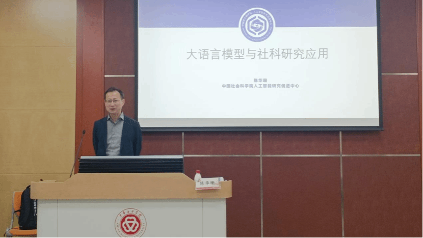 陈秘书长以自然语言处理研究为切入点,引导同学们回顾了人工智能技术的演进历程,对从早期规则系统、大语言模型的特点、以及当前大模型的技术跃迁进行了简要解析。陈秘书长结合社科学科的研究需求和鲜明案例,说明了大语言模型在文本分析、政策模拟、社会趋势预测等场景中的具体应用,展现了其在提升社科研究精度与广度中的实践价值。陈秘书长还指出,在大模型应用中,我们仍面临着人机伦理、隐私安全、认知偏见等现实挑战。
